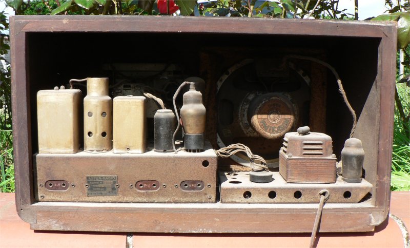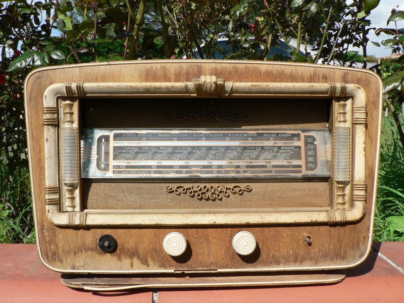 J'ai récupéré cette TSF dans un troc pour quelques Euros. Le châssis est complet et en bon état, par contre l'ébénisterie a souffert de l'humidité, pour ne pas dire de la pluie ! J'espère pouvoir la faire revivre... |
