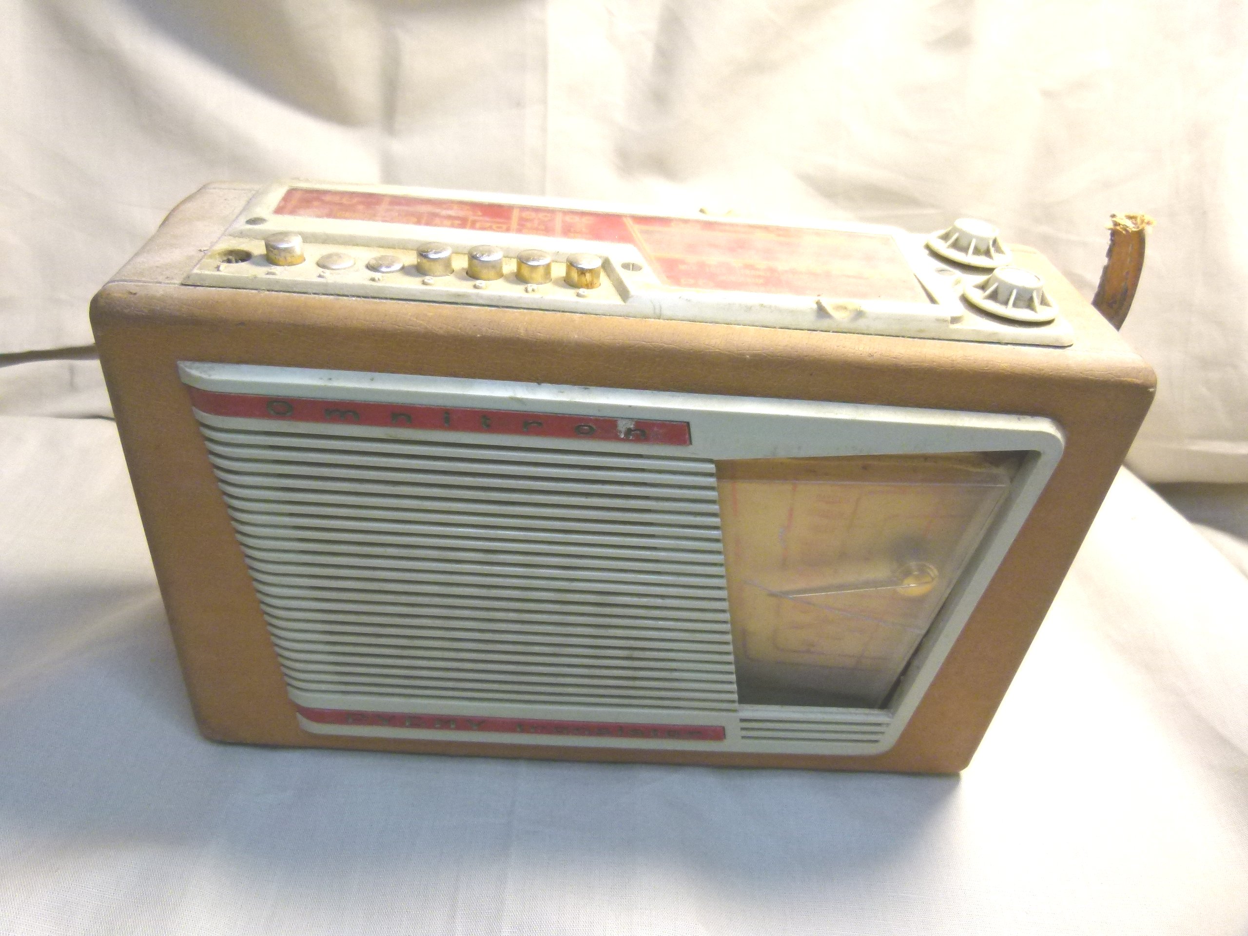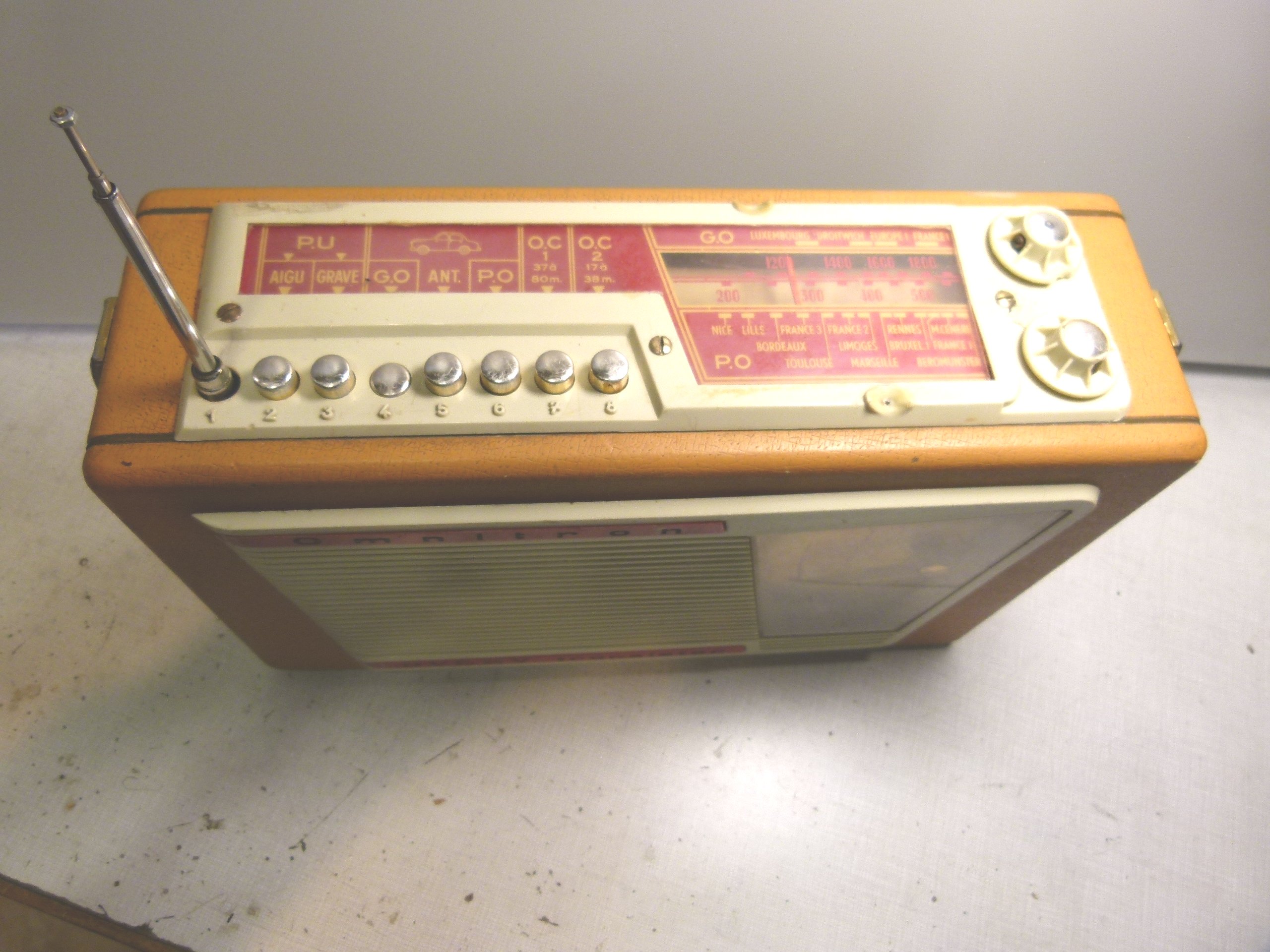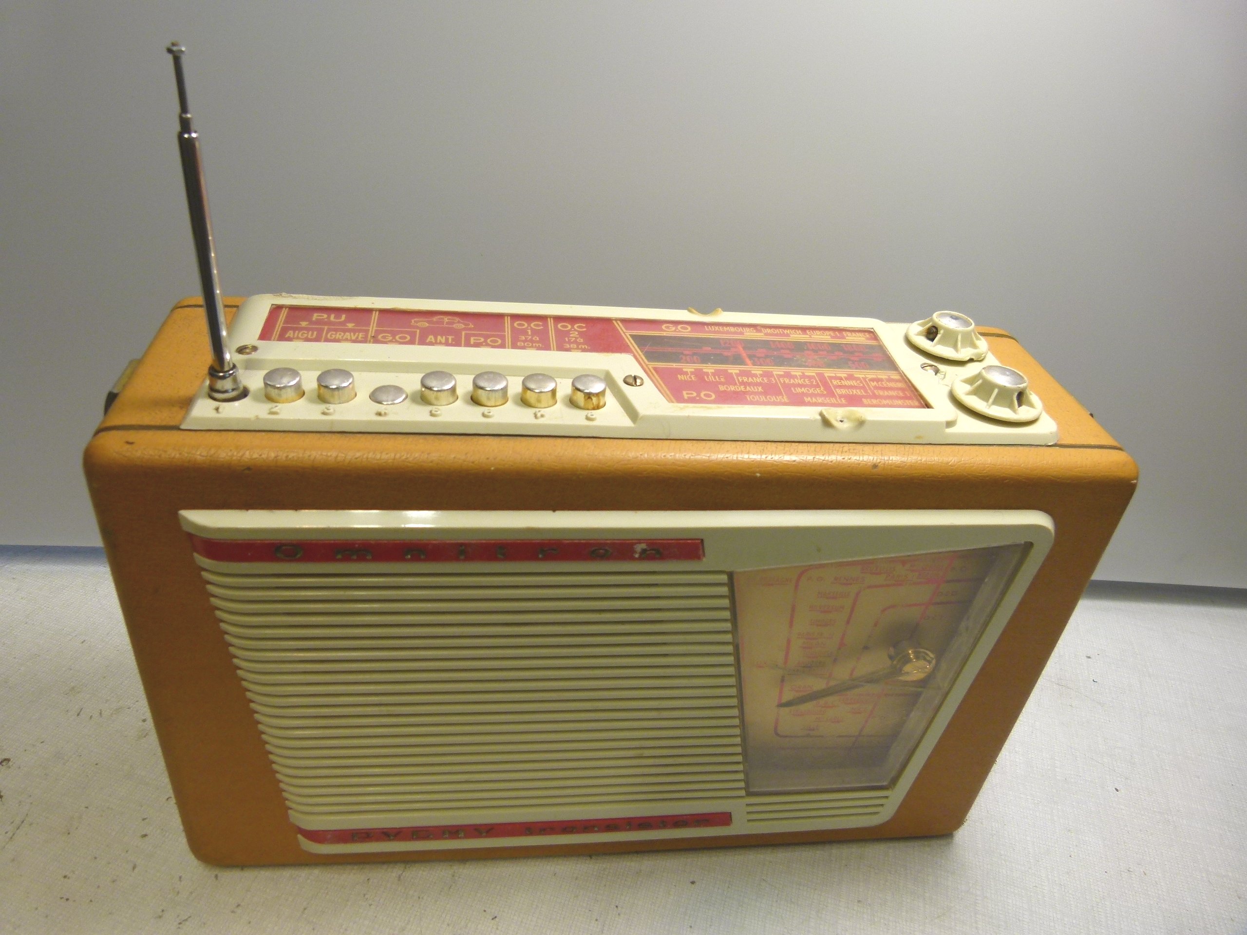 poignée en cuir est cassée, le cadran en facade est rayé, sur le dessus